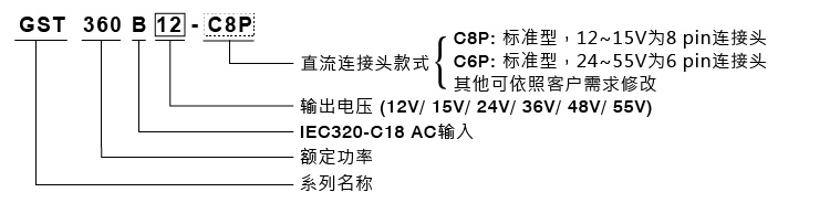 GST360B系列:360W Class II 高可靠工業(yè)級節(jié)能適配器(Level VI)
