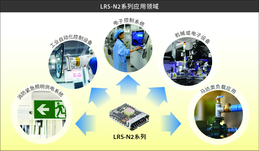 LRS-N2 系列除符合 UL/EN 62386-1 信息類認證,亦符合工業(yè)電源類 EN 61558-1 OVC III 設計。整體來說,具 OVC III 設計的產品較適合工業(yè)設備使用,可直接從配電箱接線并節(jié)省需額外透過一級隔離變壓器的使用成本。此系列符合信息類及工業(yè)電源雙認證可協(xié)助客戶縮短認證申請,可搭配各種電子設備或機械設備使用,如機械手臂、馬達類負載、咖啡機、消防緊急照明供電系統(tǒng)等。若您有設備需求具備 200% 瞬間峰值功率的應用方式,可選用 LRS-N2 系列產品或請與明緯業(yè)務團隊做聯(lián)系。