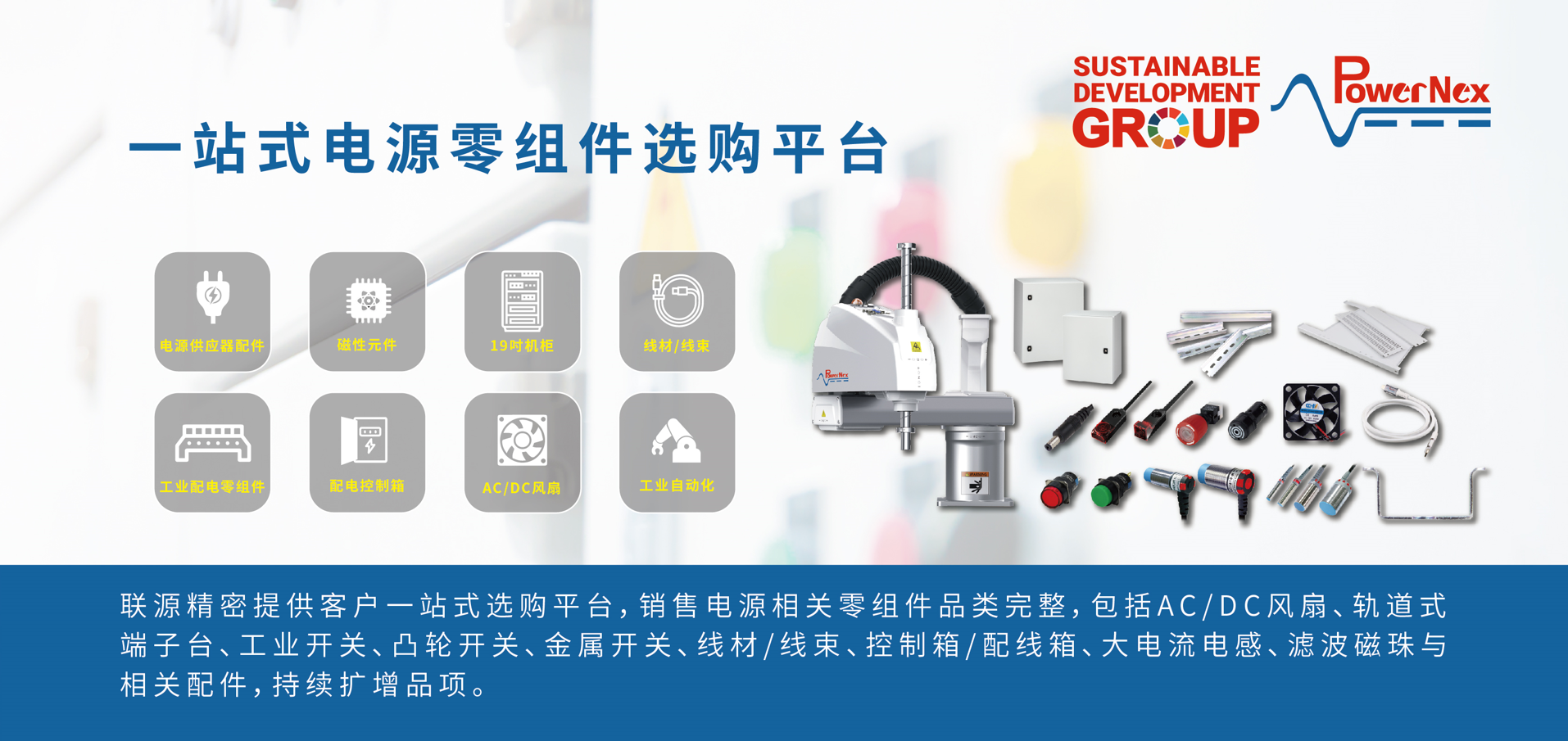此次展會,明緯同時也向觀眾展出了SDG集團旗下聯(lián)源品牌的電力電子零組件相關(guān)產(chǎn)品,包含風(fēng)扇、端子臺、傳感器、電感、接地銅牌等等。