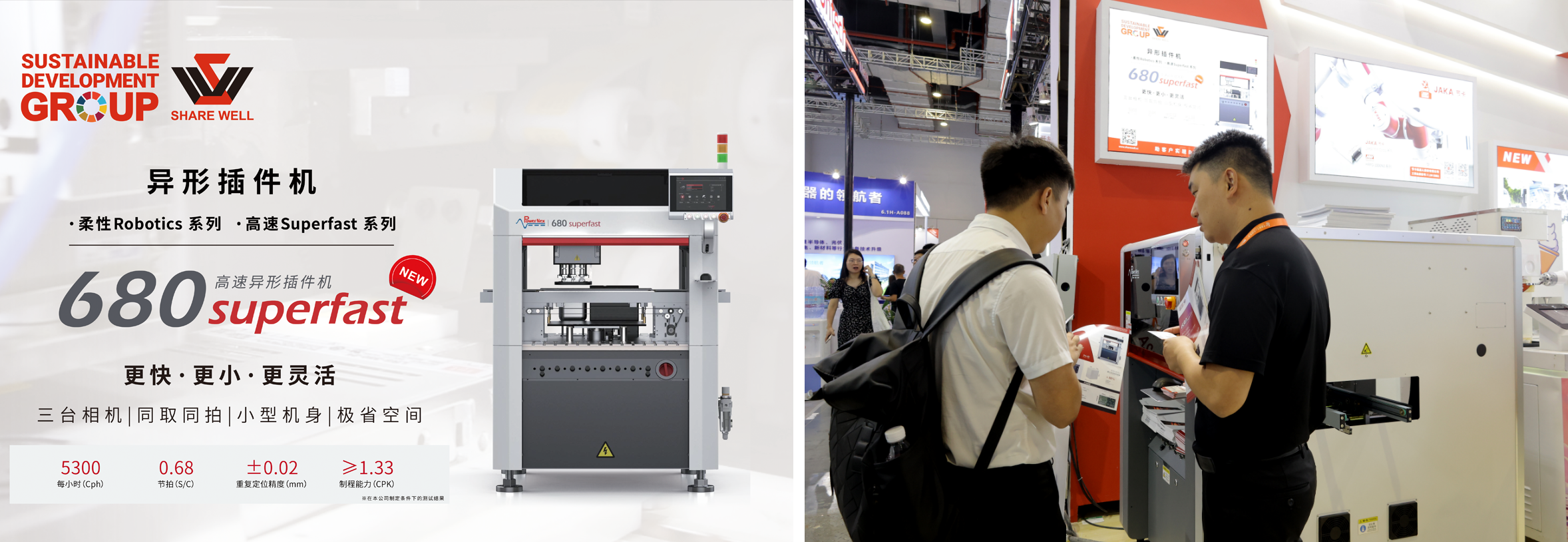 680 Superfast系列高速異形插件機(jī)采用龍門(mén)式結(jié)構(gòu),以機(jī)器視覺(jué)、運(yùn)動(dòng)控制和深度學(xué)習(xí)算法為核心,其精度、速度、靈活性和兼容性已達(dá)到行業(yè)領(lǐng)先水平。其具有更快、更小、更靈活以及三臺(tái)相機(jī),同取同拍,小型機(jī)身,極省空間等特點(diǎn)獲得較多客戶(hù)的認(rèn)可。